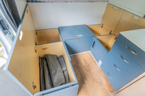 kitchen galley - wrap around dinette - convertible bed - hidden storage -