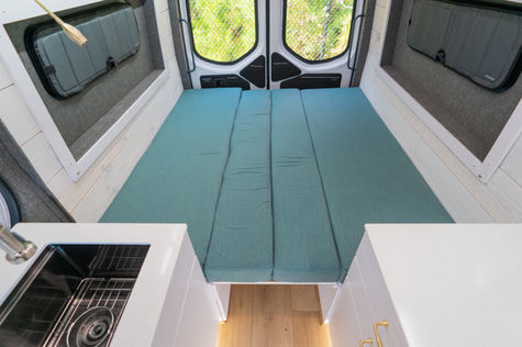 sink galley - 5g water tank - double sided benches - convertible bed - trundle storage - kitchen galley - drawer & cabinet storage - slide out toilet - off-grid electrical system - tons of other features!