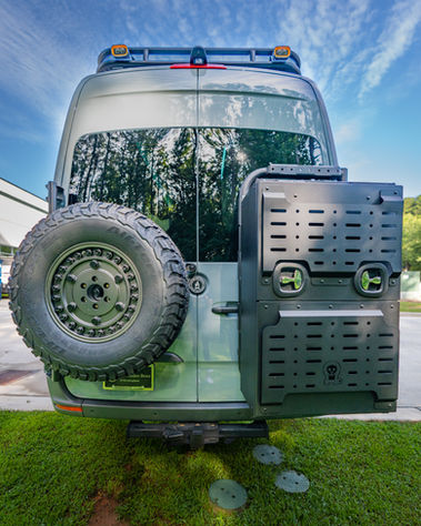 full use kitchen- wrap around dinette - overhead cabinetry - convertible lounge - entertainment station - queen and full size beds - hidden bench shower - slide out toilet - open garage - radio vans slide out garage tray - roof rack w/ deck - awning - storage box - tire carrier/ladder - suspension - off-grid electrical system - exterior lighting - and so much more!