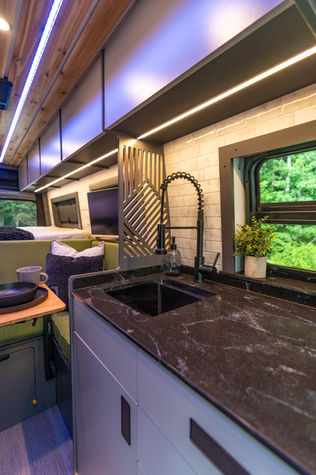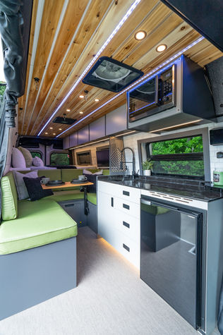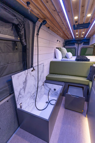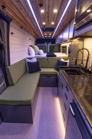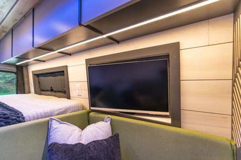 full kitchen - convertible dinette - wrap around couch - entertainment station -hidden bench shower - hidden storage - slide-out toilet - queen and twin beds - overhead cabinetry - open garage space - roof rack with light bar - grill lights - awning - tons of other features!