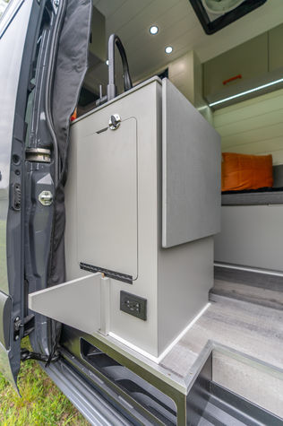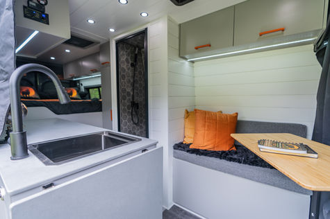 lounge space - swivel seats - kitchen - king size bed - wardrobe - walk in shower - hidden toilet - garage space - roof top deck - so much more!